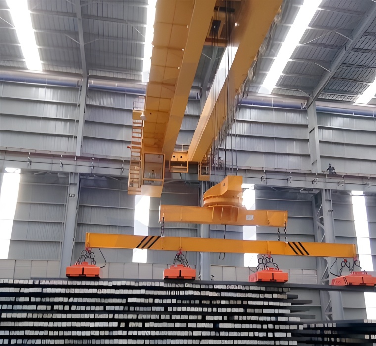 主要用于鋼廠、船廠、港口、貨場等室內(nèi)或露天的固定跨間,裝卸及搬運各種超長的型材物料等
