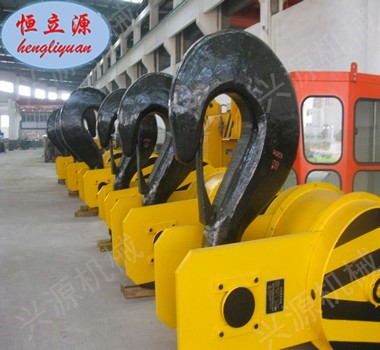 單鉤制造簡單、使用方便,但受力情況不好,大多用在起重量為80噸以下的工作場合;起重量大時常采用受力對稱的雙鉤。疊片式吊鉤由數(shù)片切割成形的鋼板鉚接而成,個別板材出現(xiàn)裂紋時整個吊鉤不會破壞,安全性較好,但自重較大,大多用在大起重量或吊運鋼水盛桶的起重機上。吊鉤在作業(yè)過程中常受沖擊,須采用韌性好的優(yōu)質(zhì)碳素鋼制造。